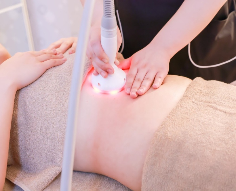 脂肪細胞に働きかけて、ボリュームダウンする痩身マシンの施術です。二の腕・お腹・脚など、気になる部分をご指定ください